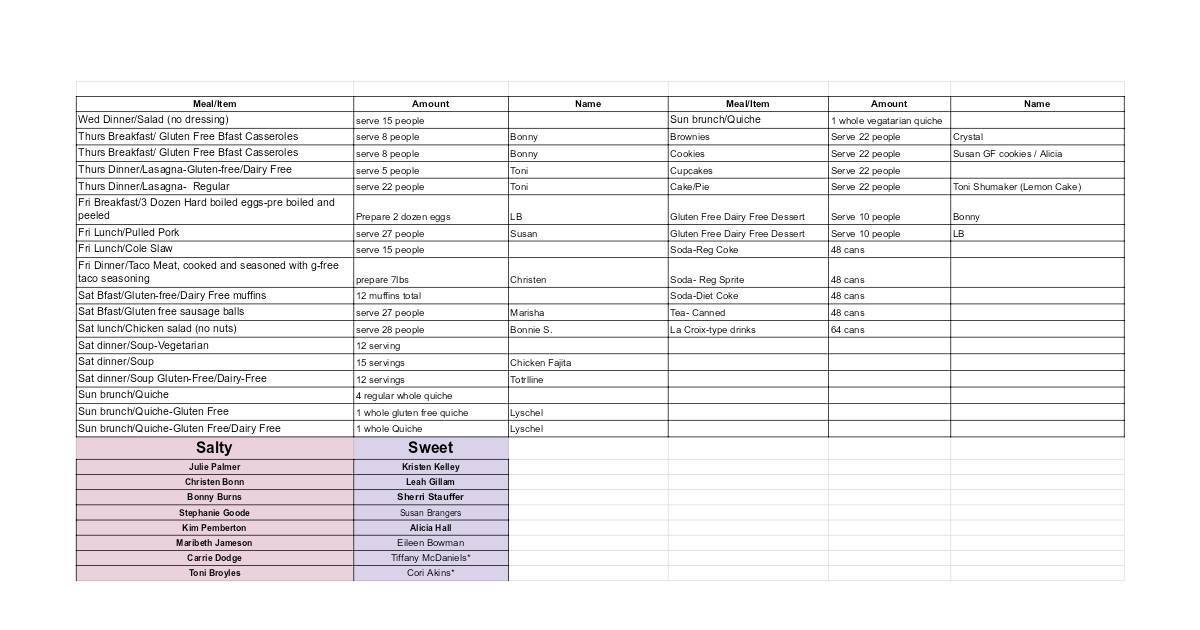 serve 8 people Bonny Cookies Serve 22 people Susan GF cookies / Alicia