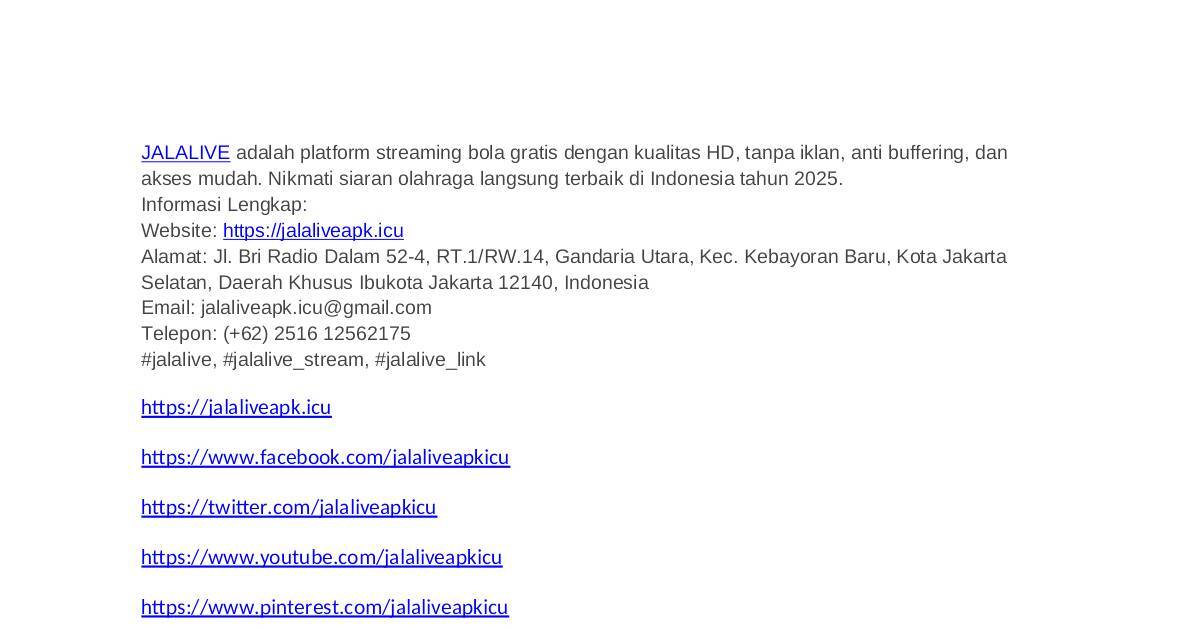 JALALIVE adalah platform streaming bola gratis dengan kualitas HD, tanpa iklan, anti buffering, dan