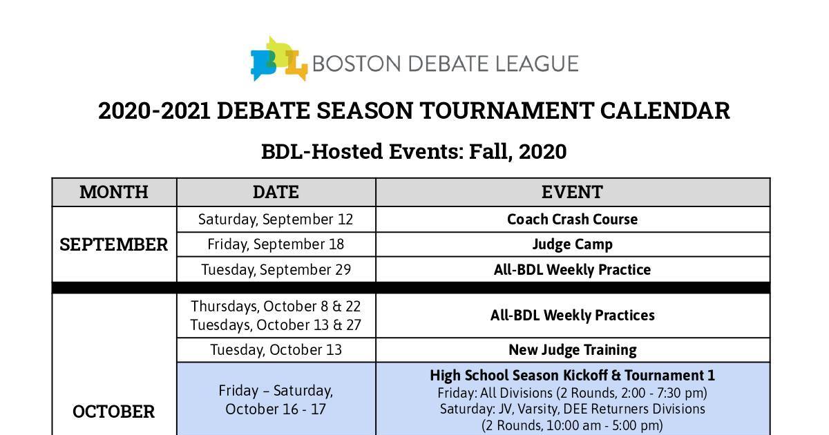 2020-2021 DEBATE SEASON TOURNAMENT CALENDAR