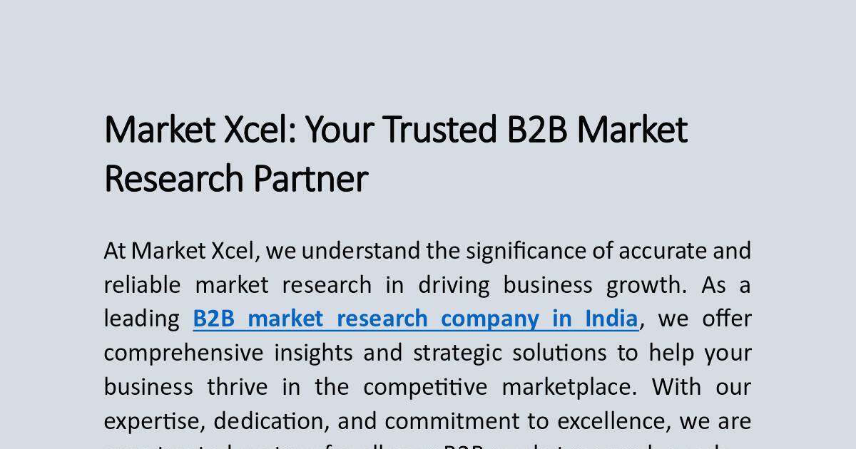 leading B2B market research company in India, we oer