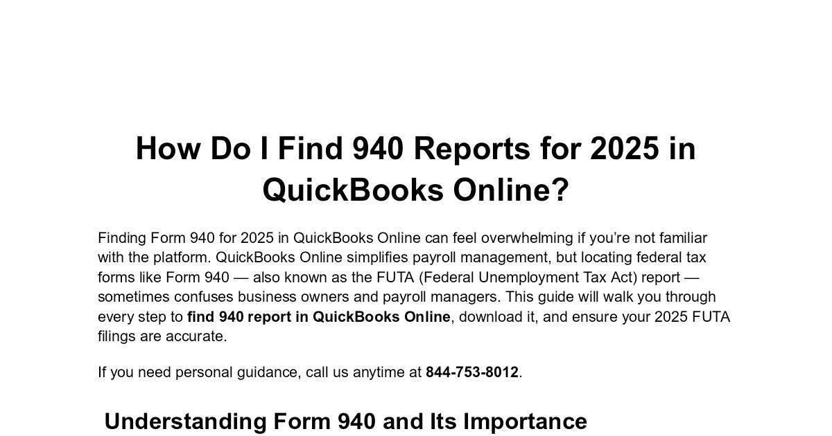 every step to find 940 report in QuickBooks Online, download it, and ensure your 2025 FUTA