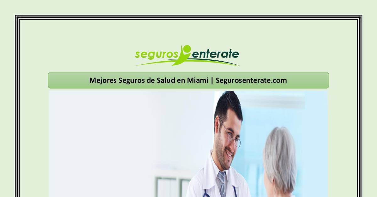 ¿Busca el mejor seguro de salud en Miami? Segurosenterate.com es el mejor