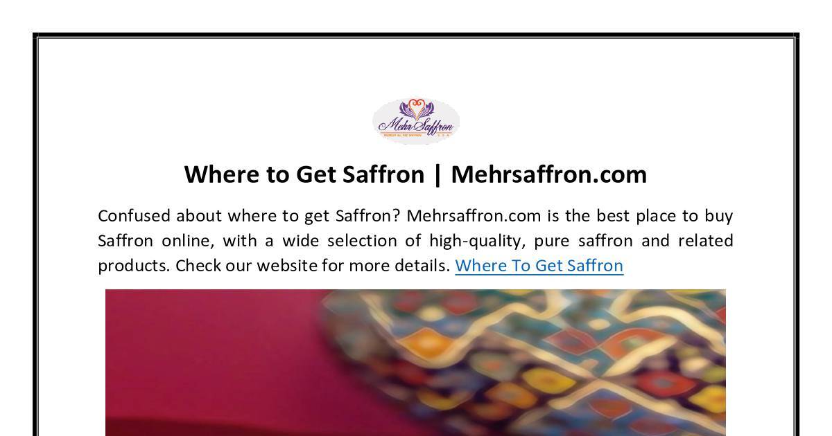 products. Check our website for more details. Where To Get Saffron