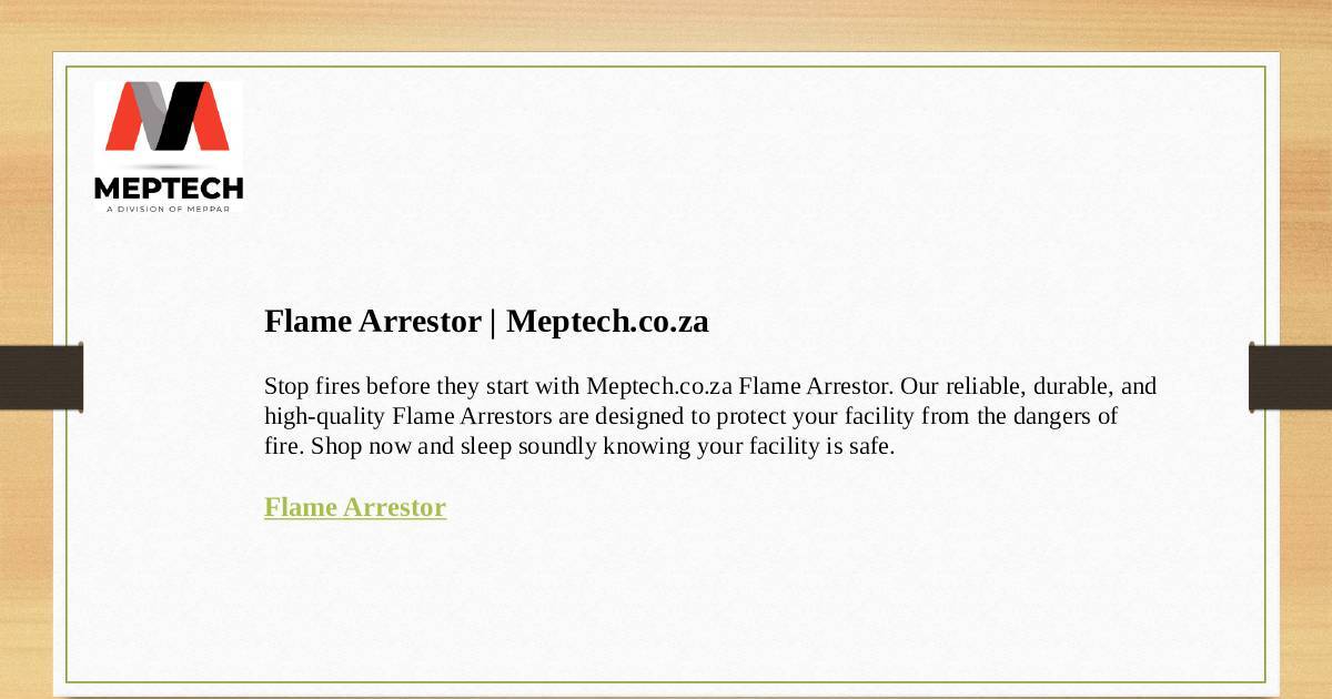 Stop fires before they start with Meptech.co.za Flame Arrestor. Our reliable, durable, and