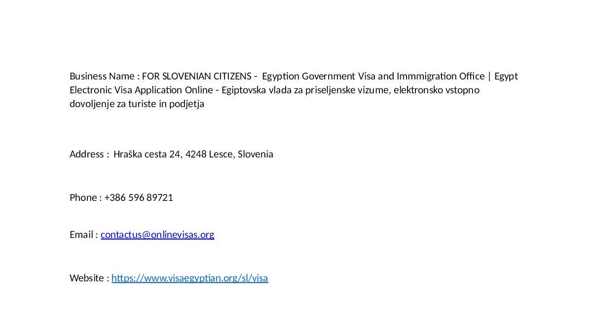 Business Name : FOR SLOVENIAN CITIZENS - Egypon Government Visa and Immmigraon O#ce | Egypt