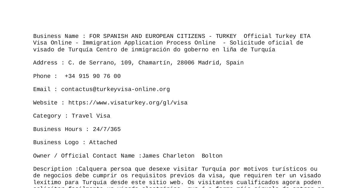 Business Name : FOR SPANISH AND EUROPEAN CITIZENS - TURKEY Official Turkey ETA