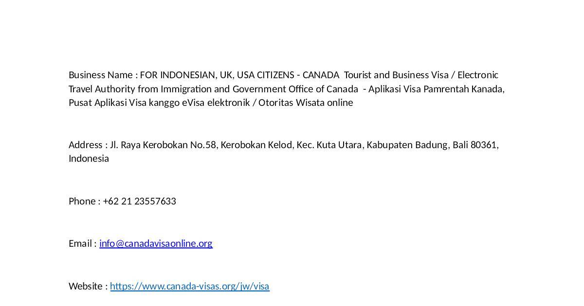 Business Name : FOR INDONESIAN, UK, USA CITIZENS - CANADA Tourist and Business Visa / Electronic