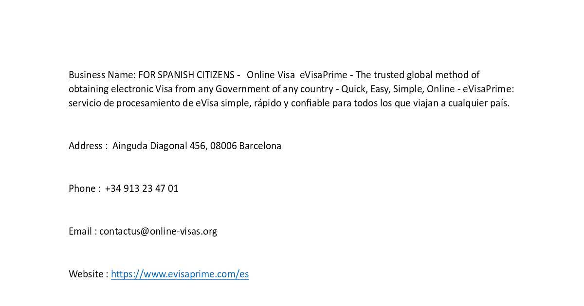 Business Name: FOR SPANISH CITIZENS - Online Visa eVisaPrime - The trusted global method of