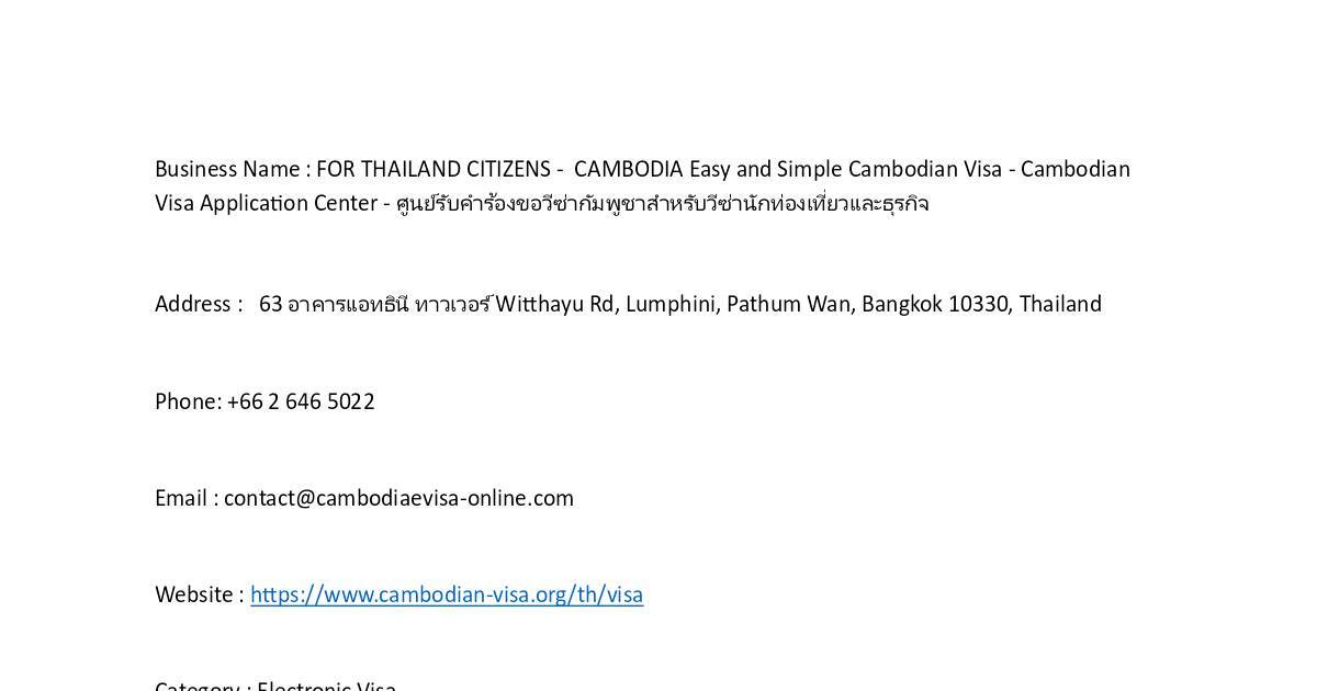 Business Name : FOR THAILAND CITIZENS - CAMBODIA Easy and Simple Cambodian Visa - Cambodian