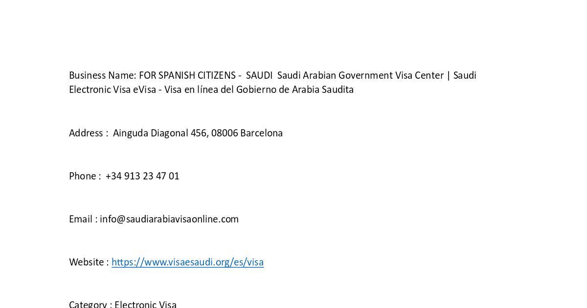 Business Name: FOR SPANISH CITIZENS - SAUDI Saudi Arabian Government Visa Center | Saudi