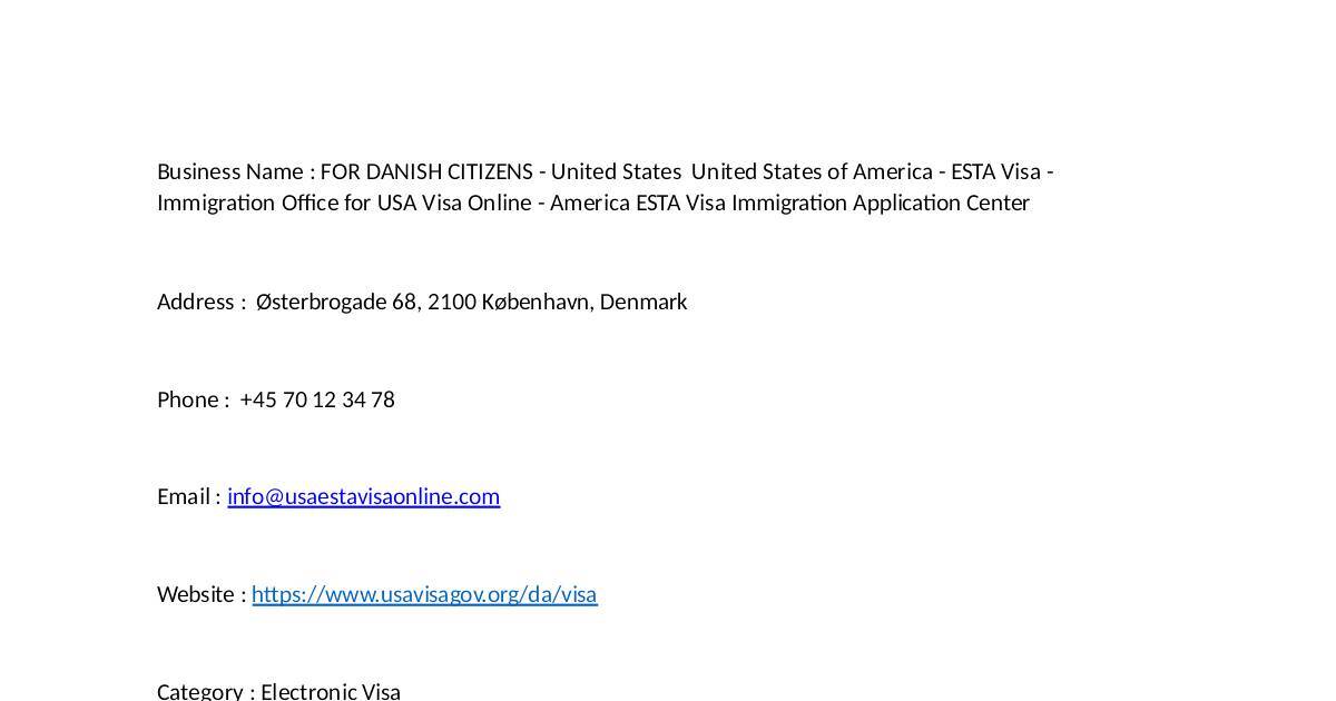 Business Name : FOR DANISH CITIZENS - United States United States of America - ESTA Visa -