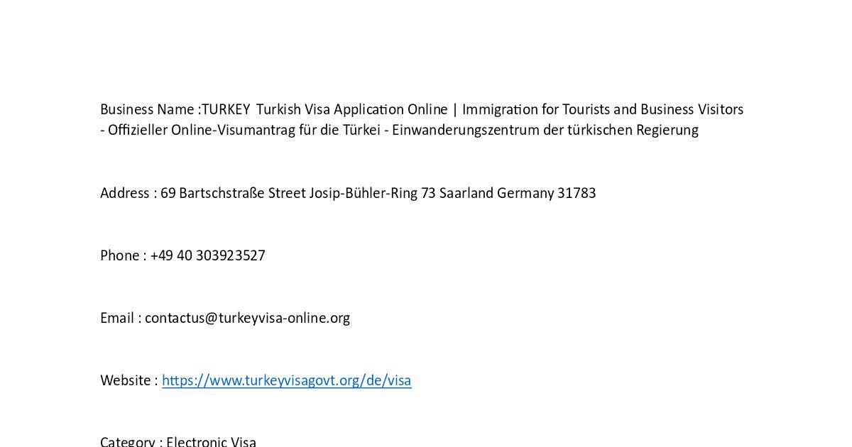 Business Name :TURKEY Turkish Visa Applicaon Online | Immigraon for Tourists and Business Visitors