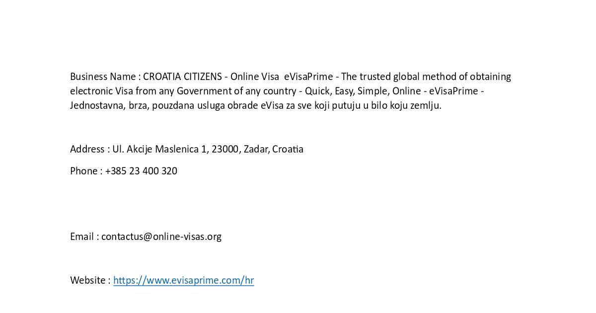 Business Name : CROATIA CITIZENS - Online Visa eVisaPrime - The trusted global method of obtaining