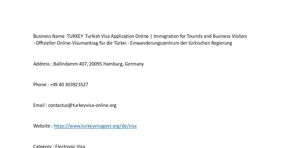 Business Name :TURKEY Turkish Visa Applicaon Online | Immigraon for Tourists and Business Visitors