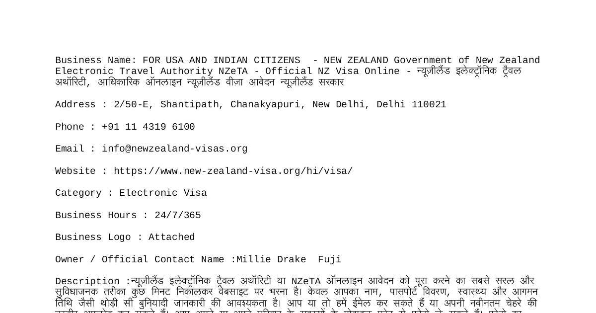Business Name: FOR USA AND INDIAN CITIZENS - NEW ZEALAND Government of New Zealand