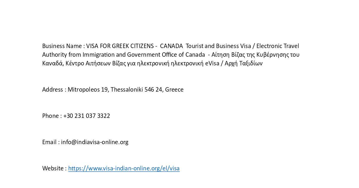 Business Name : VISA FOR GREEK CITIZENS - CANADA Tourist and Business Visa / Electronic Travel