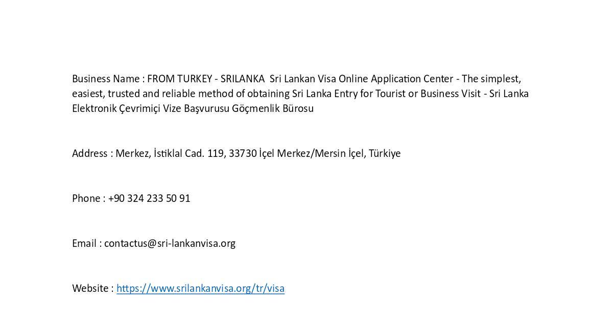 Business Name : FROM TURKEY - SRILANKA Sri Lankan Visa Online Applicaon Center - The simplest,