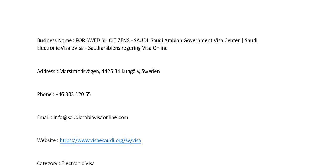 Business Name : FOR SWEDISH CITIZENS - SAUDI Saudi Arabian Government Visa Center | Saudi
