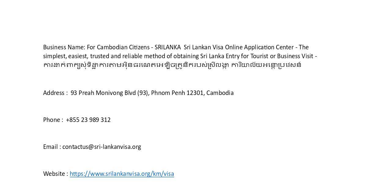 Business Name: For Cambodian Cizens - SRILANKA Sri Lankan Visa Online Applicaon Center - The