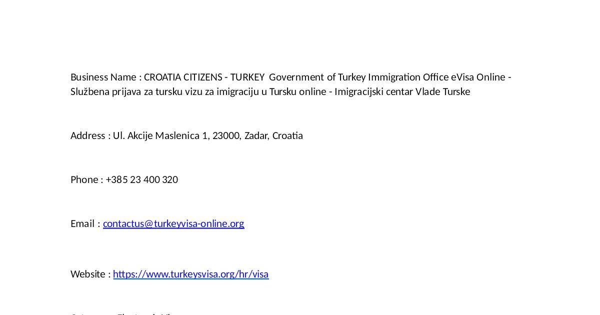 Business Name : CROATIA CITIZENS - TURKEY Government of Turkey Immigra"on O#ce eVisa Online -