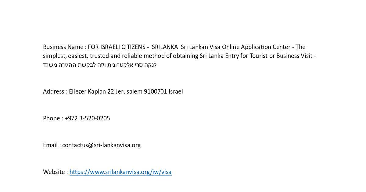Business Name : FOR ISRAELI CITIZENS - SRILANKA Sri Lankan Visa Online Applicaon Center - The