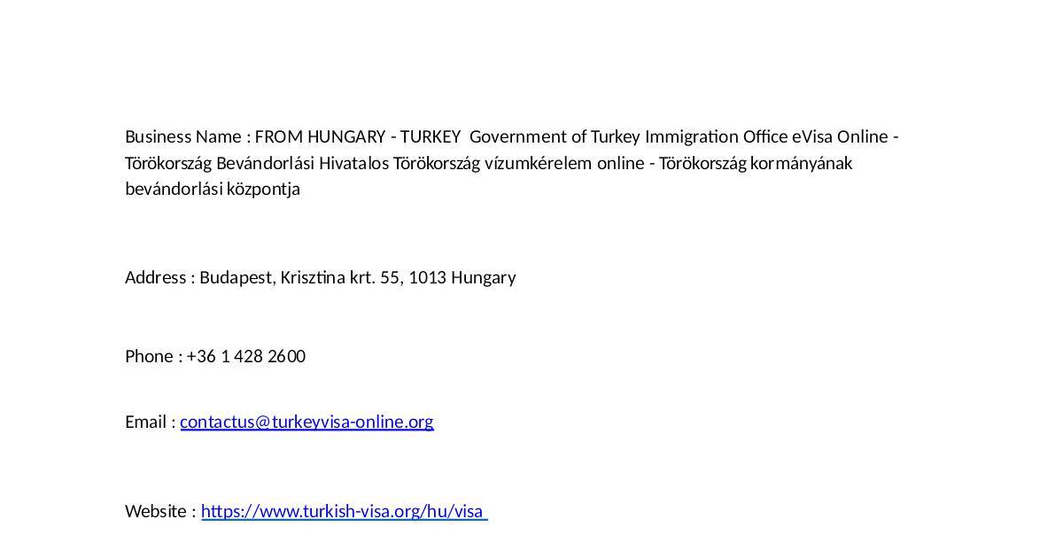 Business Name : FROM HUNGARY - TURKEY Government of Turkey Immigra"on O#ce eVisa Online -