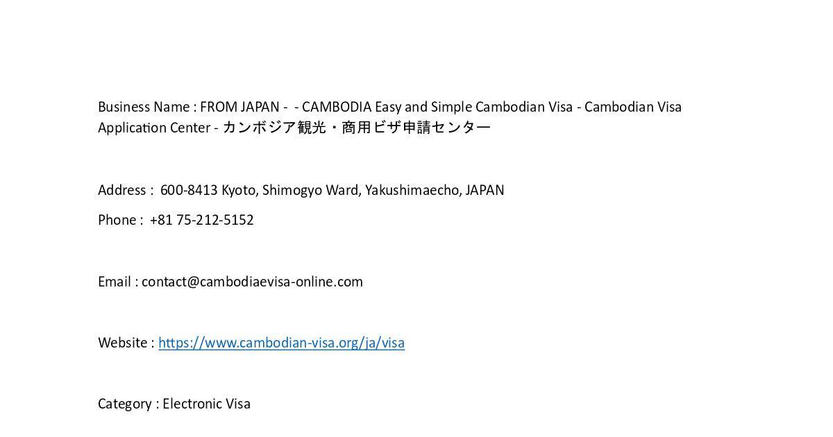 Business Name : FROM JAPAN - - CAMBODIA Easy and Simple Cambodian Visa - Cambodian Visa