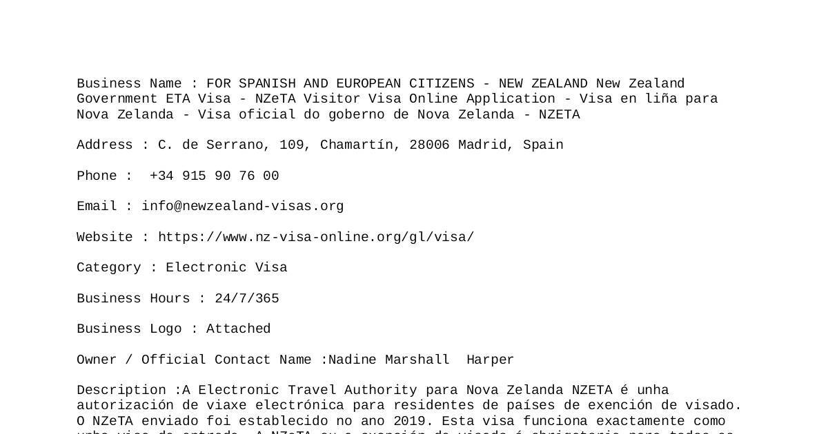 Business Name : FOR SPANISH AND EUROPEAN CITIZENS - NEW ZEALAND New Zealand