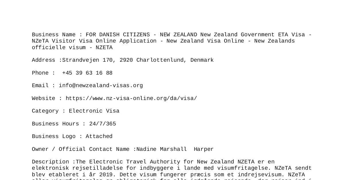 Business Name : FOR DANISH CITIZENS - NEW ZEALAND New Zealand Government ETA Visa -