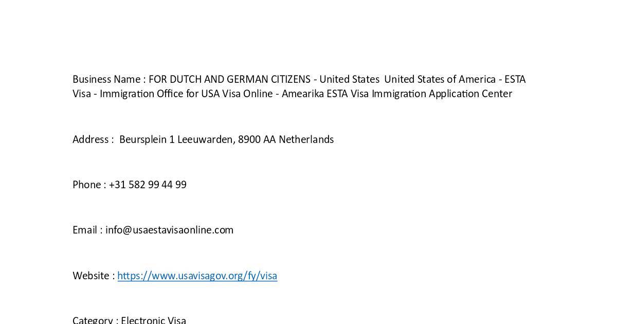 Business Name : FOR DUTCH AND GERMAN CITIZENS - United States United States of America - ESTA