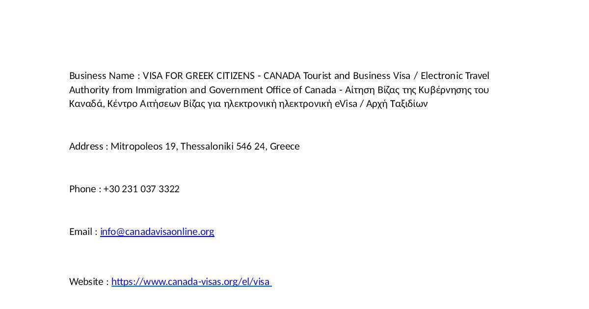 Business Name : VISA FOR GREEK CITIZENS - CANADA Tourist and Business Visa / Electronic Travel