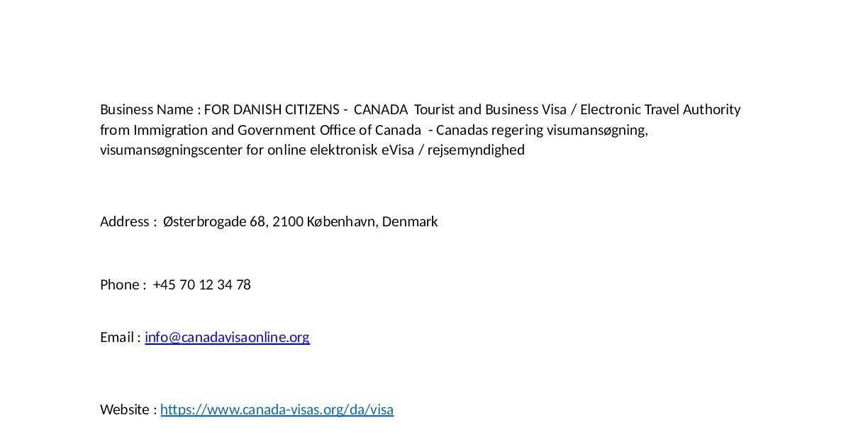 Business Name : FOR DANISH CITIZENS - CANADA Tourist and Business Visa / Electronic Travel Authority
