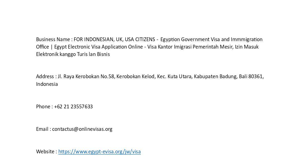 Business Name : FOR INDONESIAN, UK, USA CITIZENS - Egypon Government Visa and Immmigraon
