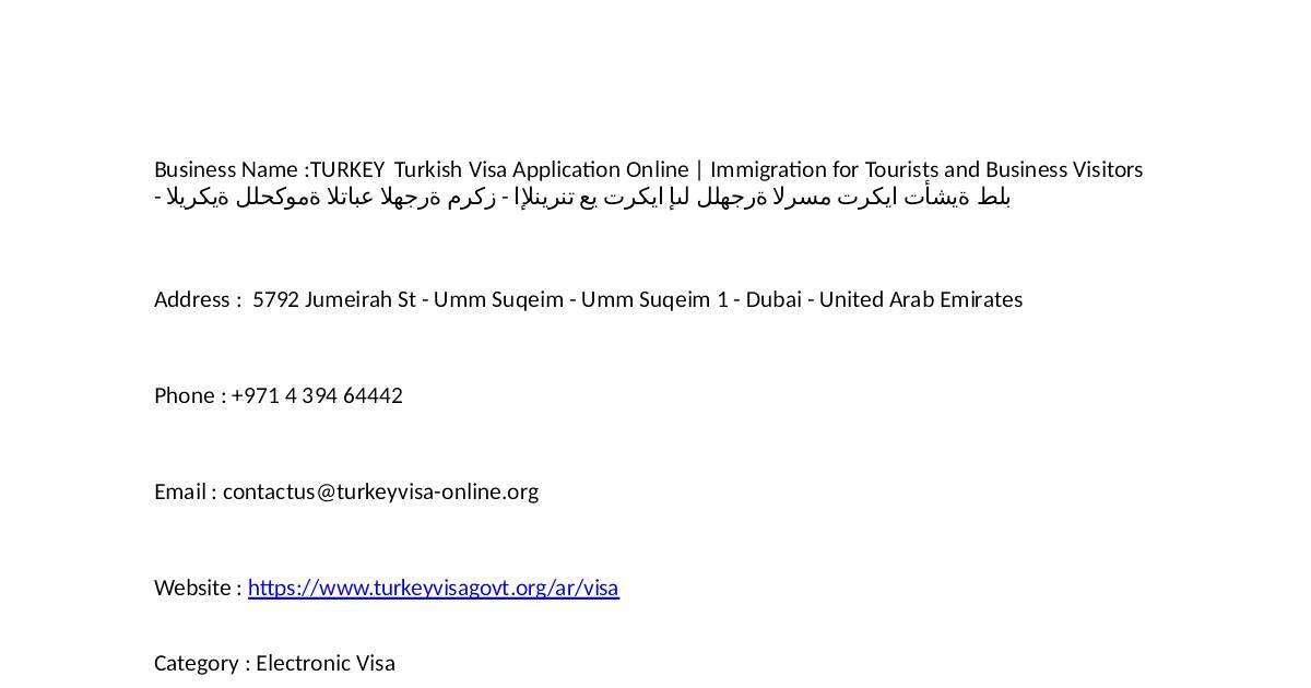 Business Name :TURKEY Turkish Visa Applicaon Online | Immigraon for Tourists and Business Visitors
