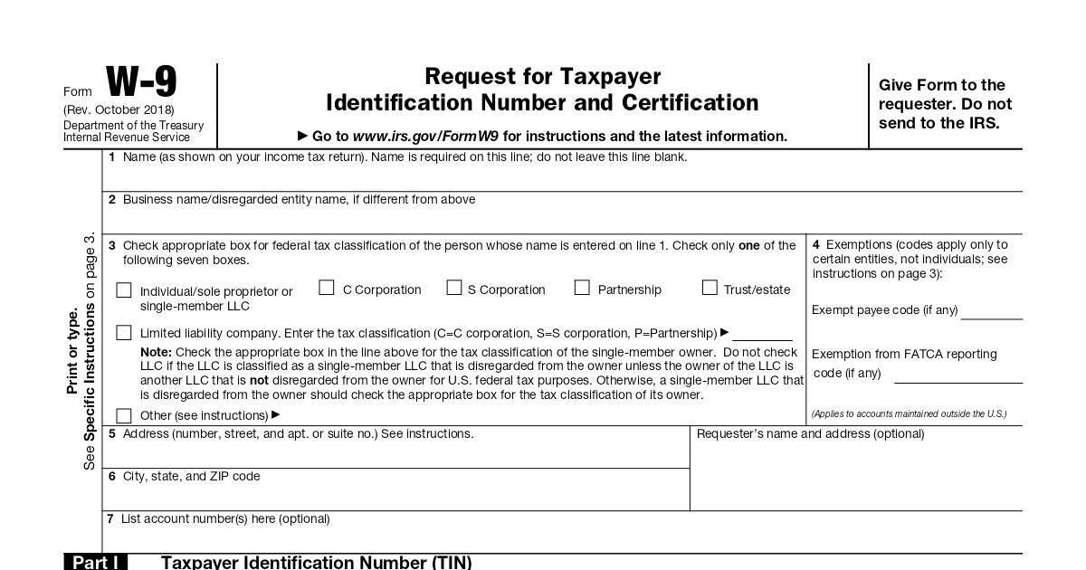 Form W-9 (Rev. 10-2018)
