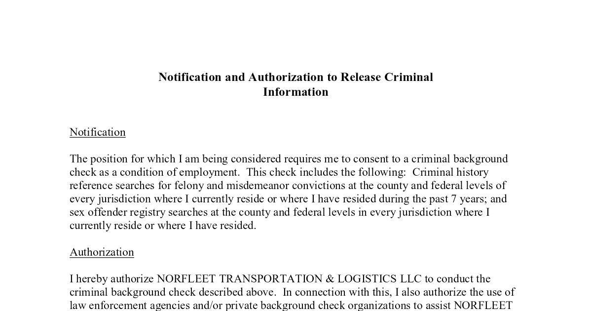 Notification and Authorization to Release Criminal