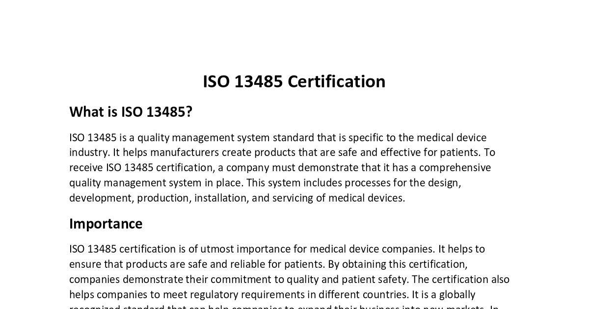 ISO 13485 certification is of utmost importance for medical device companies. It helps to