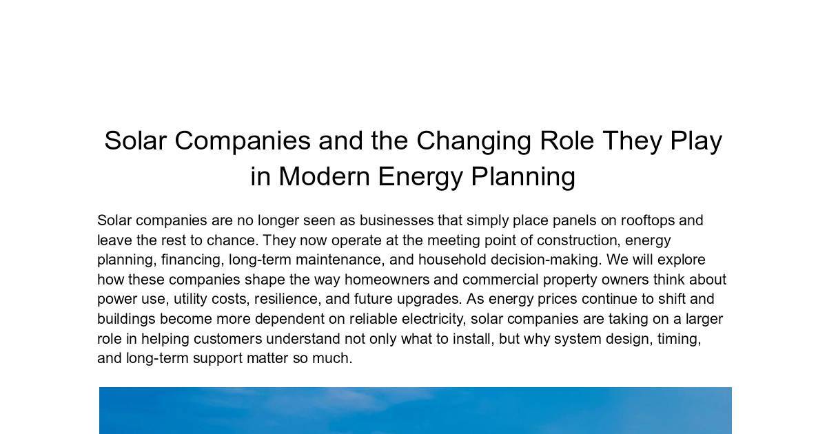 Solar Companies as Long-Term Energy Planning Partners