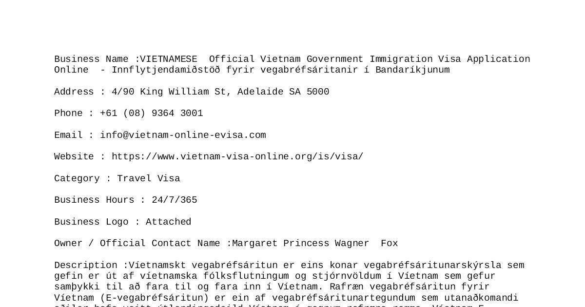 Business Name :VIETNAMESE Official Vietnam Government Immigration Visa Application