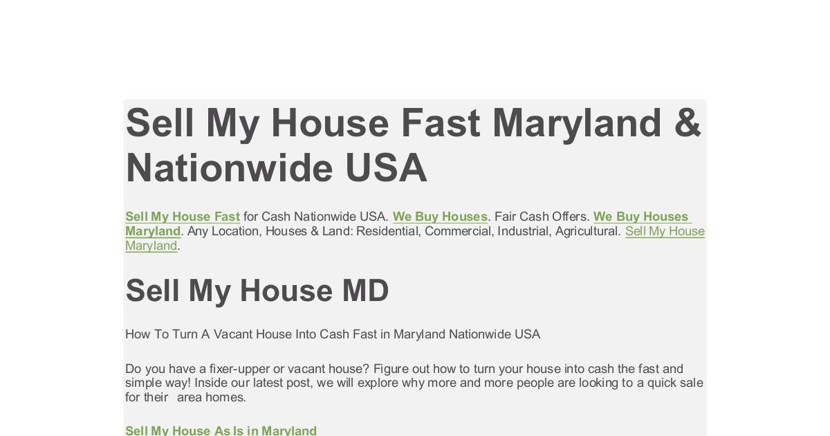 How To Turn A Vacant House Into Cash Fast in Maryland Nationwide USA