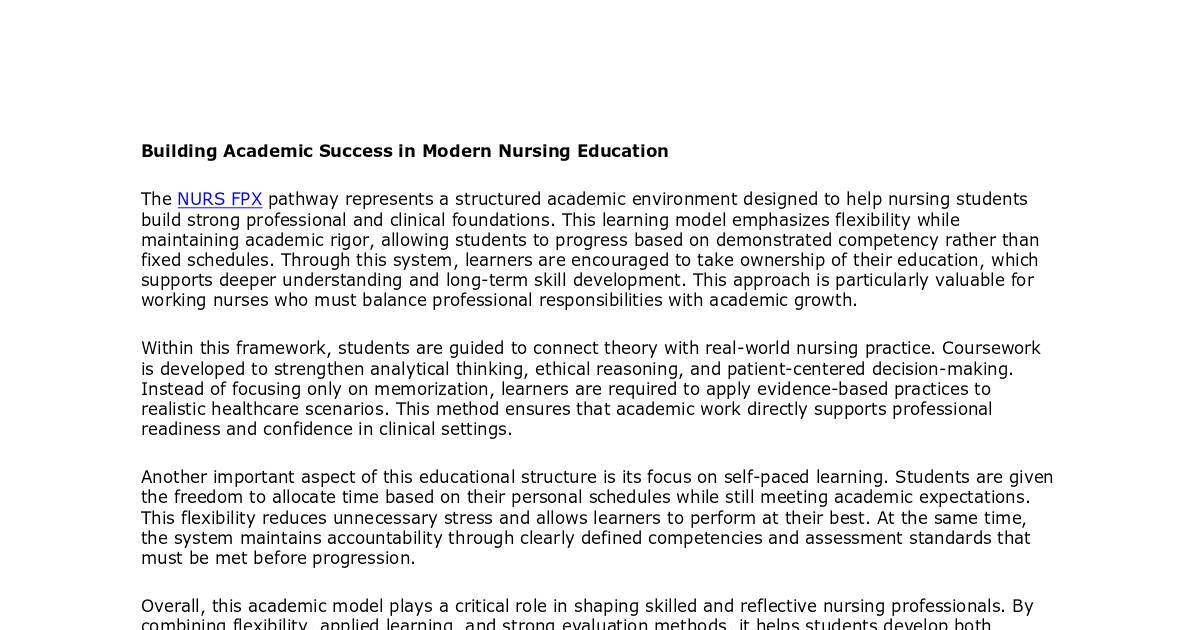 The NURS FPX pathway represents a structured academic environment designed to help nursing students