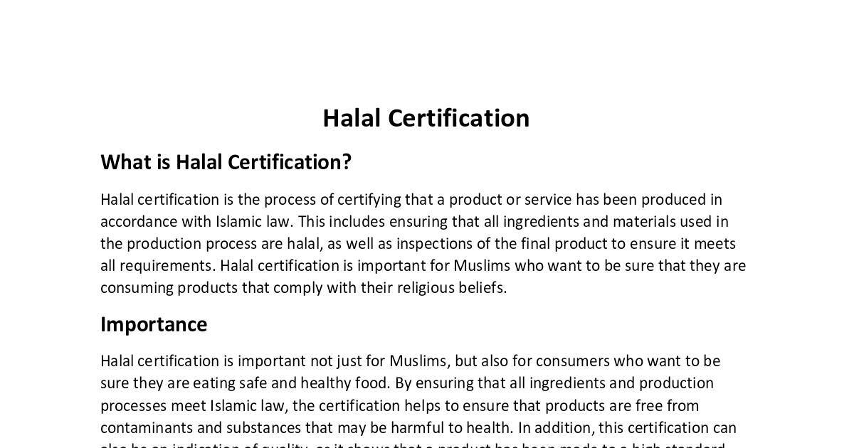 all requirements. Halal certification is important for Muslims who want to be sure that they are