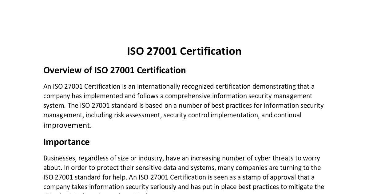 An ISO 27001 Certification is an internationally recognized certification demonstrating that a