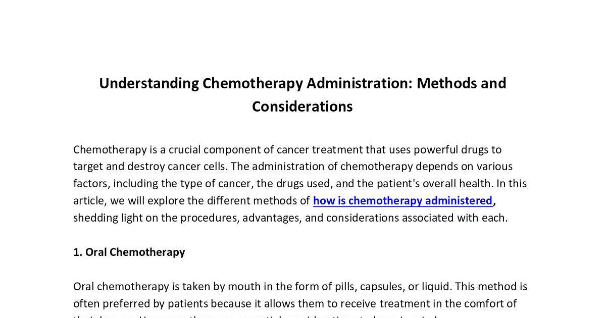 article, we will explore the different methods of how is chemotherapy administered,