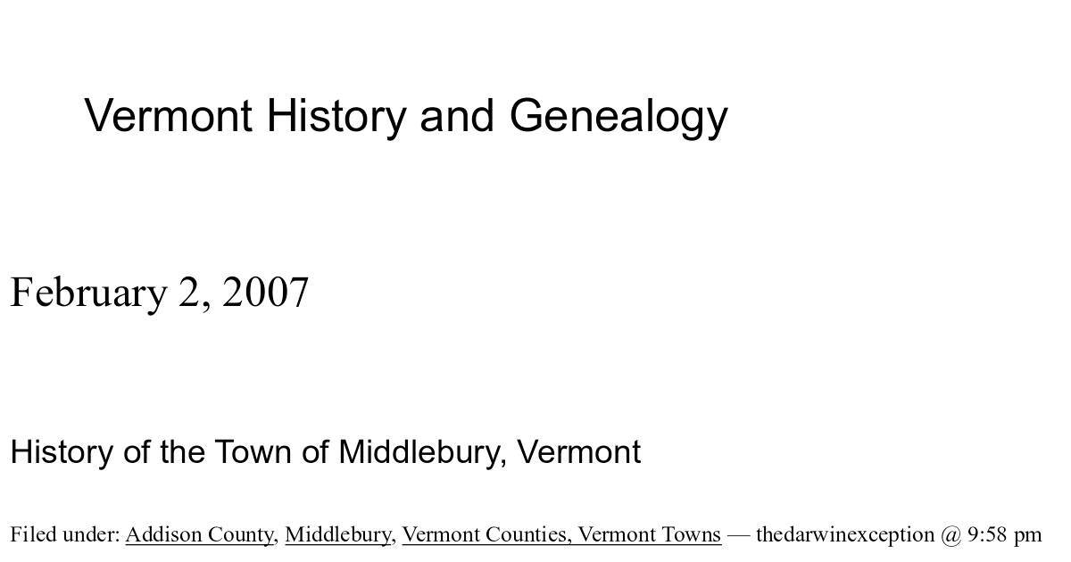 History of the Town of Middlebury, Vermont