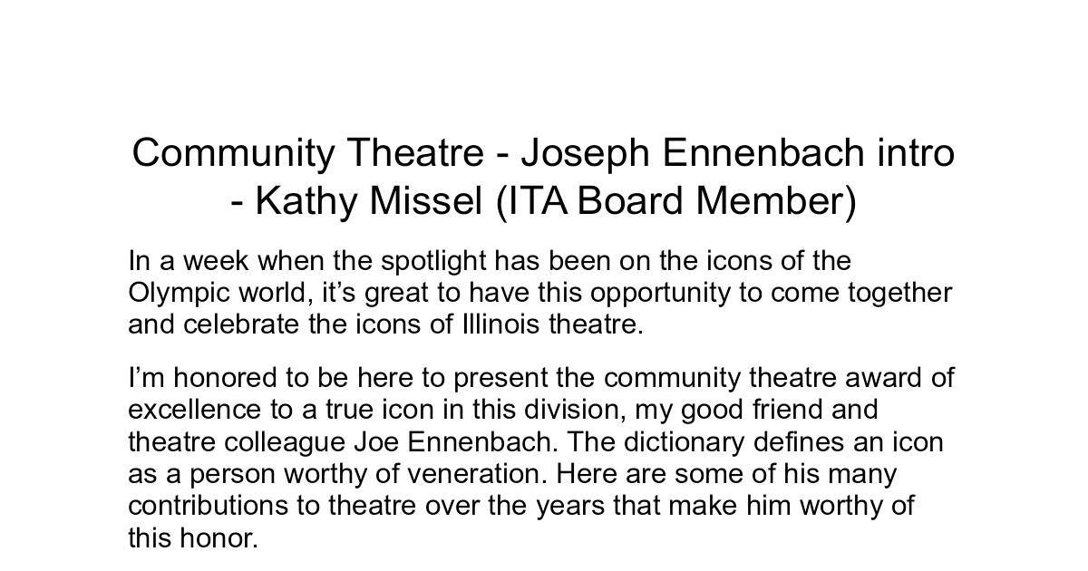 theatre colleague Joe Ennenbach. The dictionary defines an icon