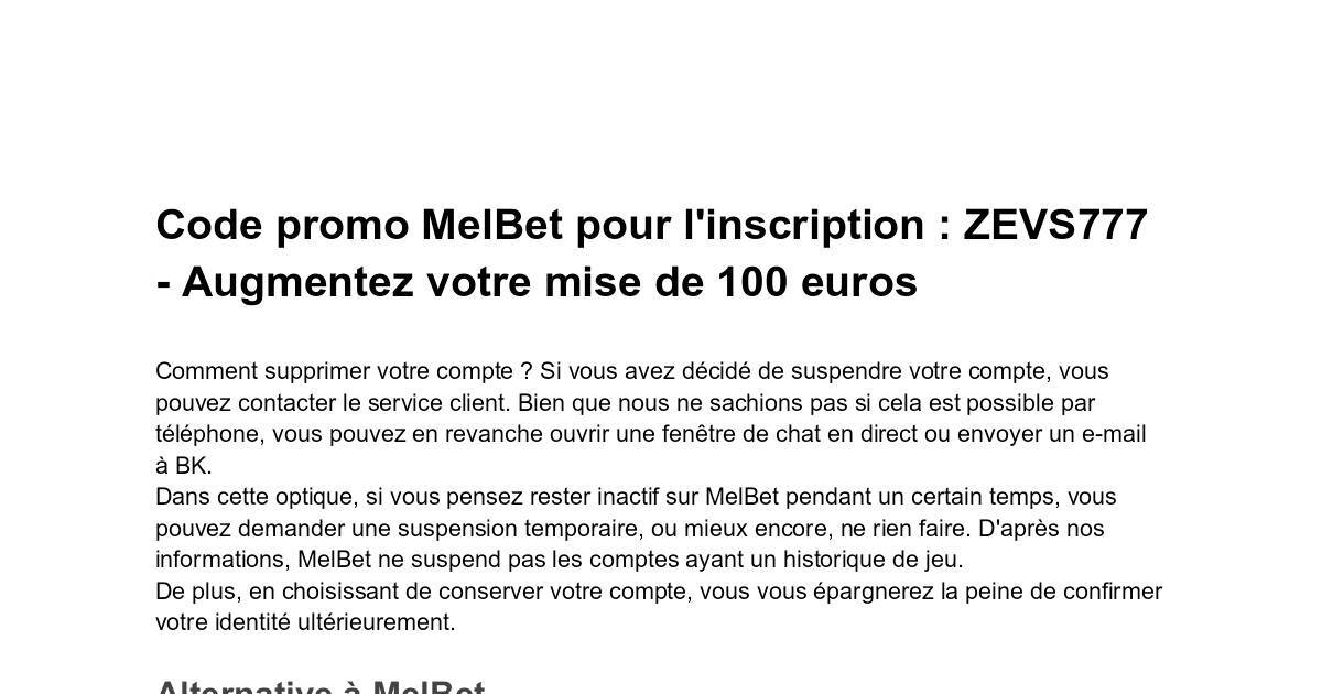 conditions générales du code promo MelBet sur le site de MelBet. Code gratuit MelBet :