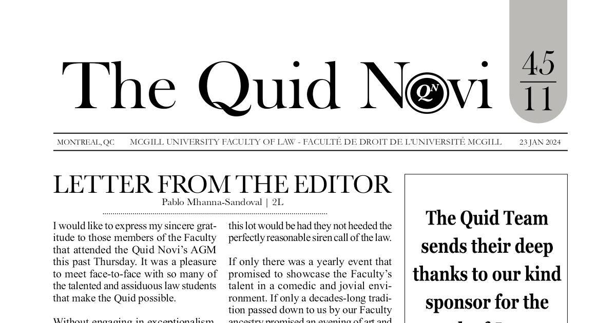 23 JAN 2024MCGILL UNIVERSITY FACULTY OF LAW - FACULTÉ DE DROIT DE L’UNIVERSITÉ MCGILL