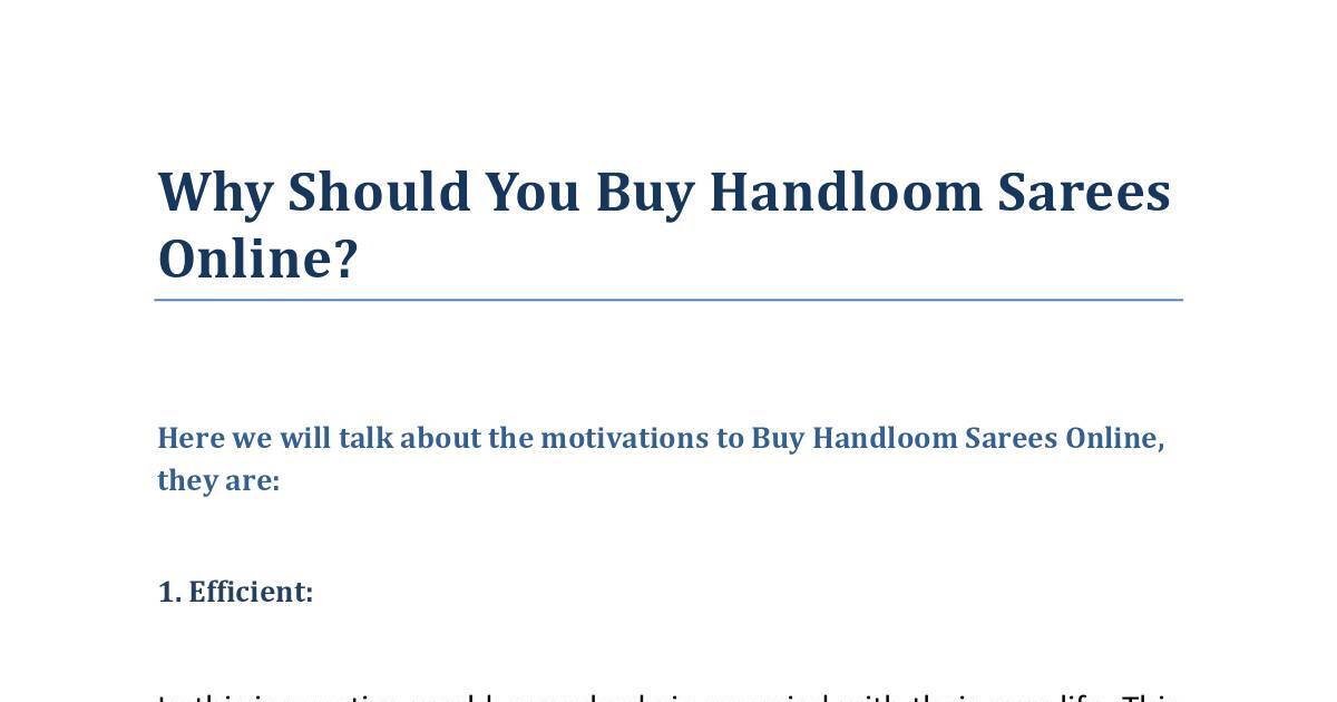 Here we will talk about the motivations to Buy Handloom Sarees Online,