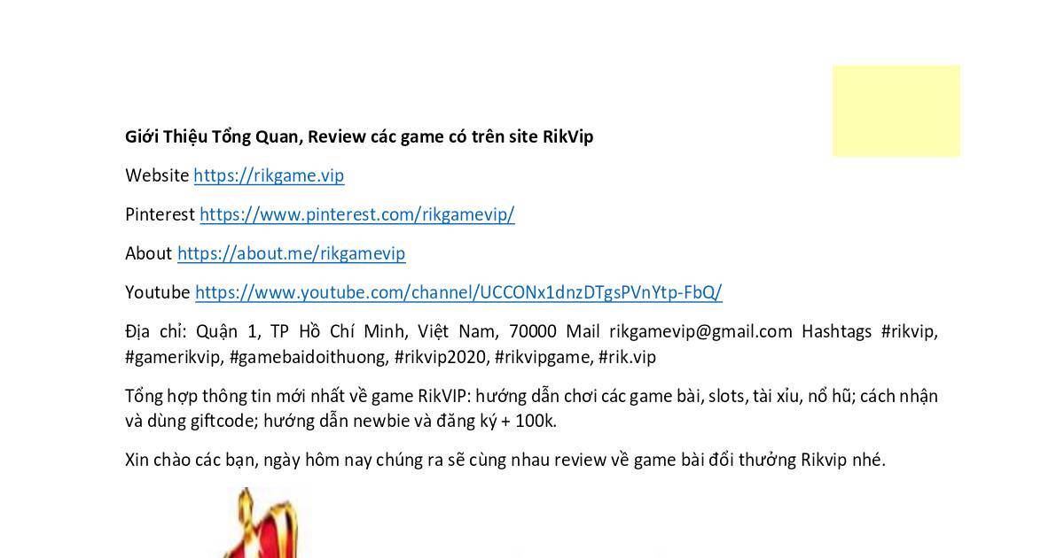 Giới Thiệu Tổng Quan, Review các game có trên site RikVip